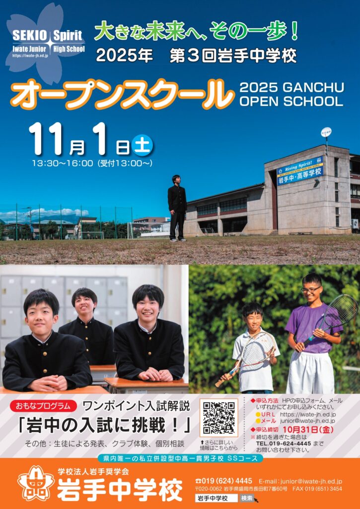 岩手中学校の令和7年度第3回オープンスクールを開催いたします!