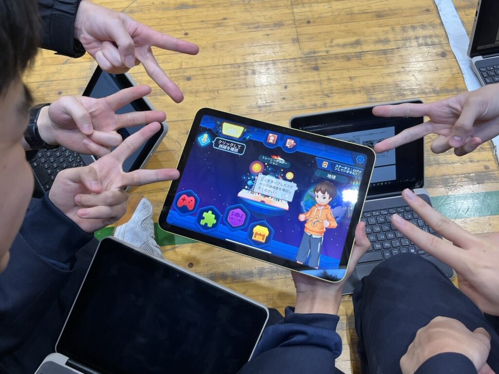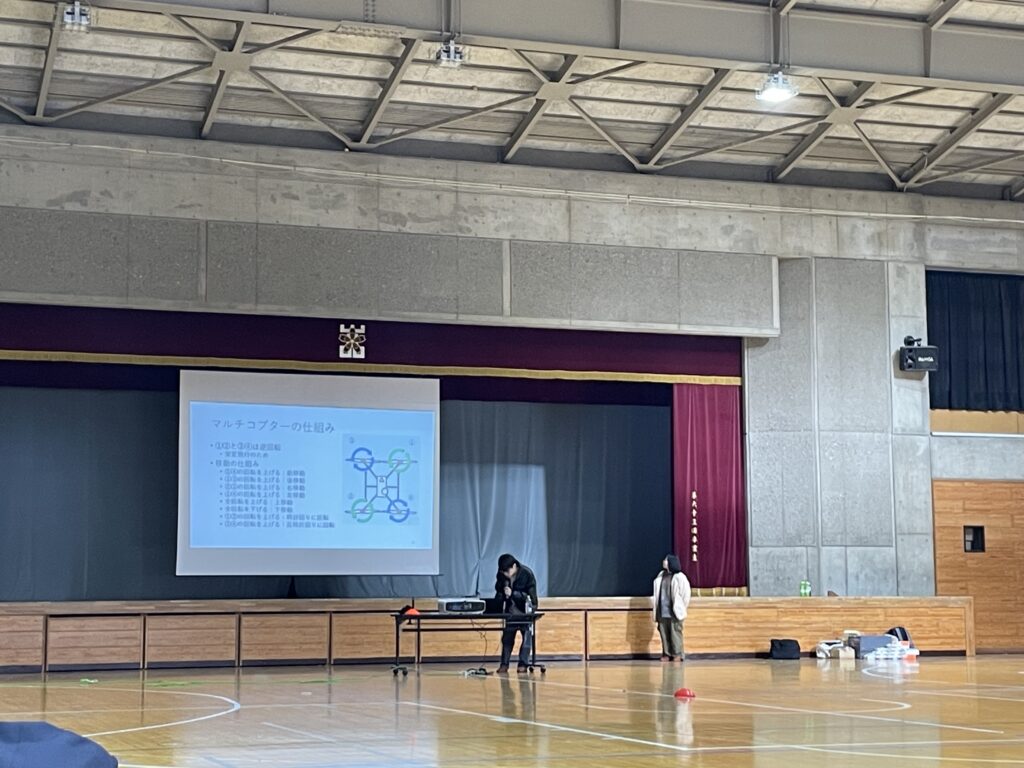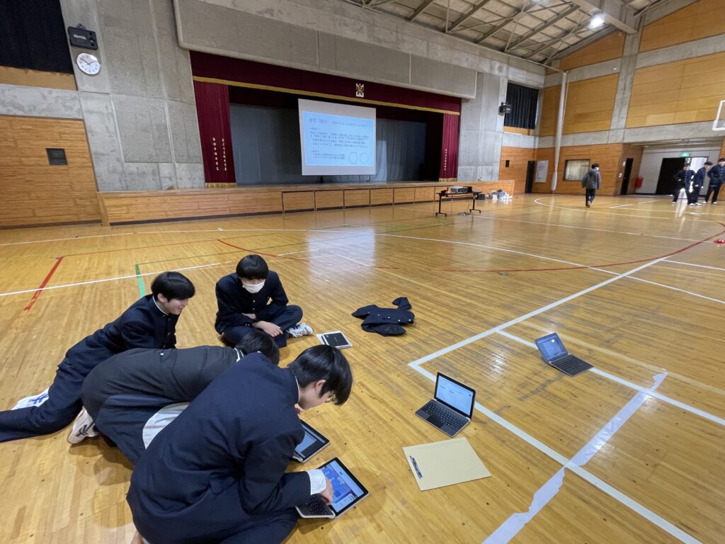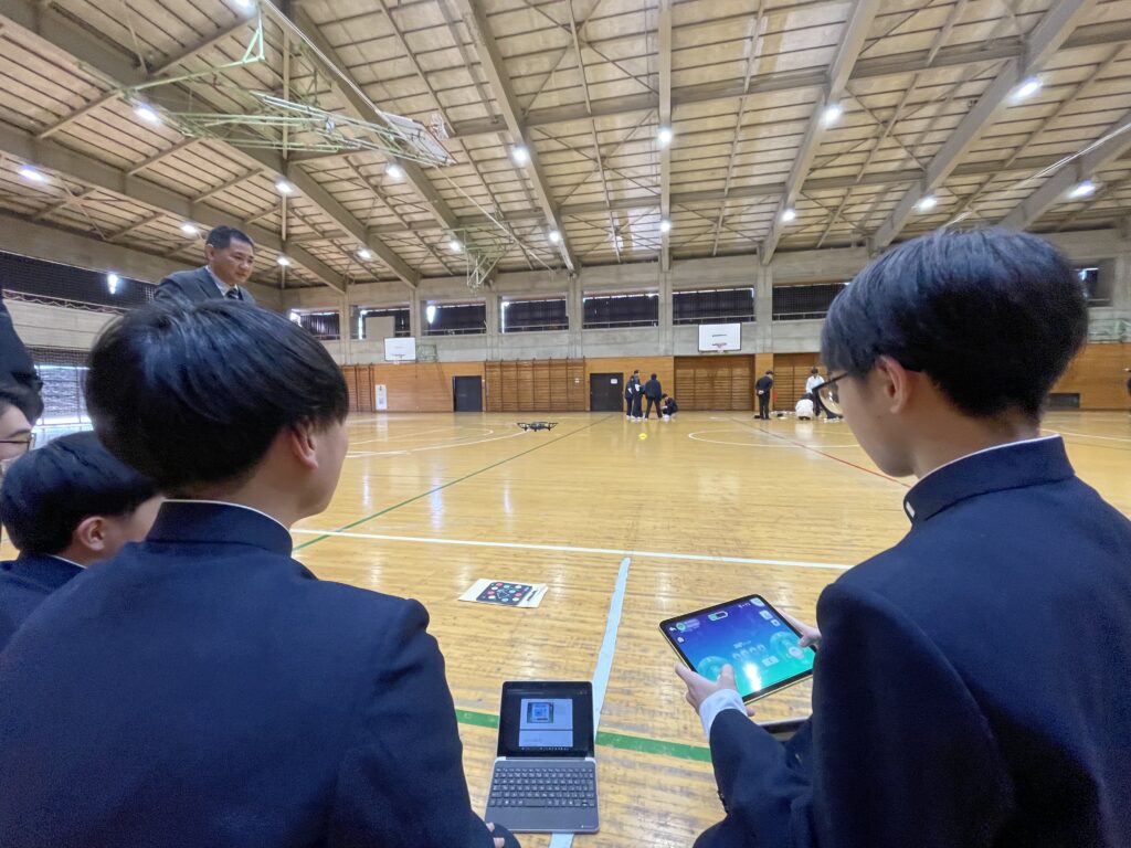 岩手県立大学ソフトウエア情報学部の先生と学生をお招きして、「ドローンを動かすプログラミングを作ろう!」をテーマに、1年D組の生徒が特別授業を行いました。8つの班にわかれ、ドローンプログラミング入門から、ミッションパット操作、画像認識などを体験しました。