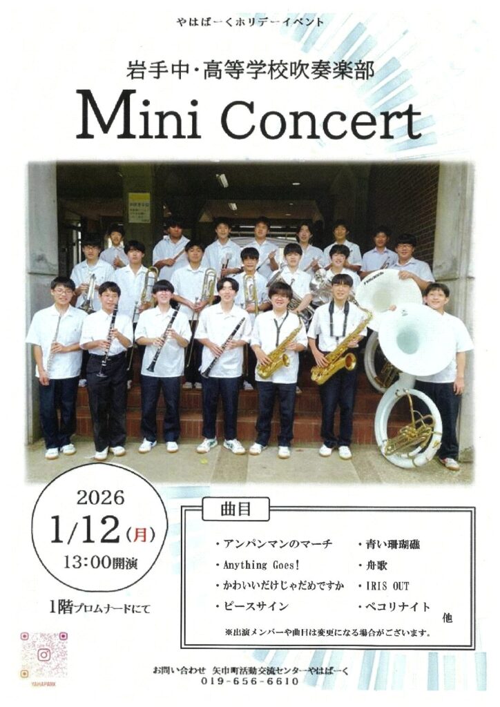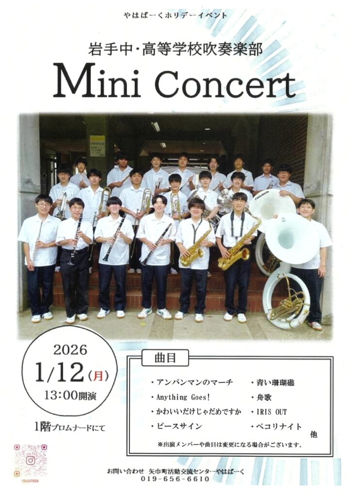やはぱーくホリデーイベント「岩手中・高等学校吹奏楽部 Mini Concert」のご案内