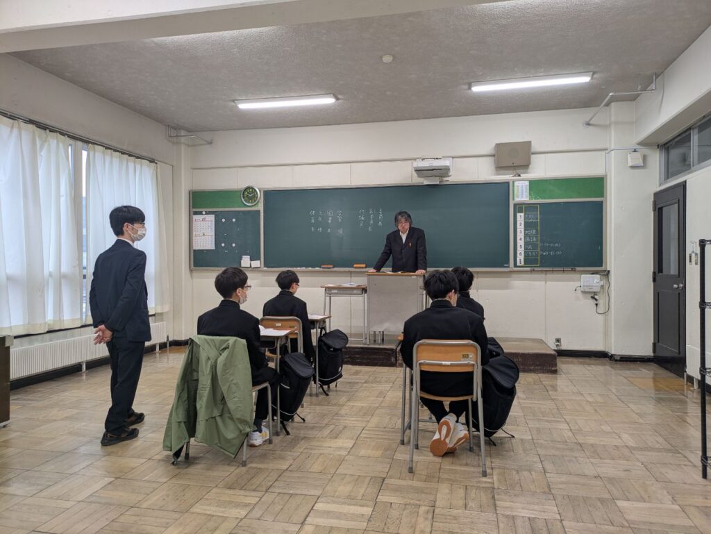 生徒指導の先生から、学校生活を安全に過ごすための大事なマナーのお話し。