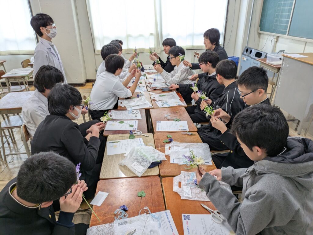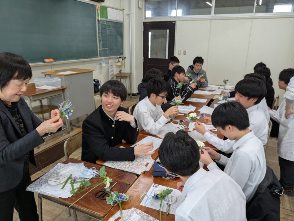 講師の先生をお迎えし、卒業式に向けて、自分たちでコサージュをつくりました。